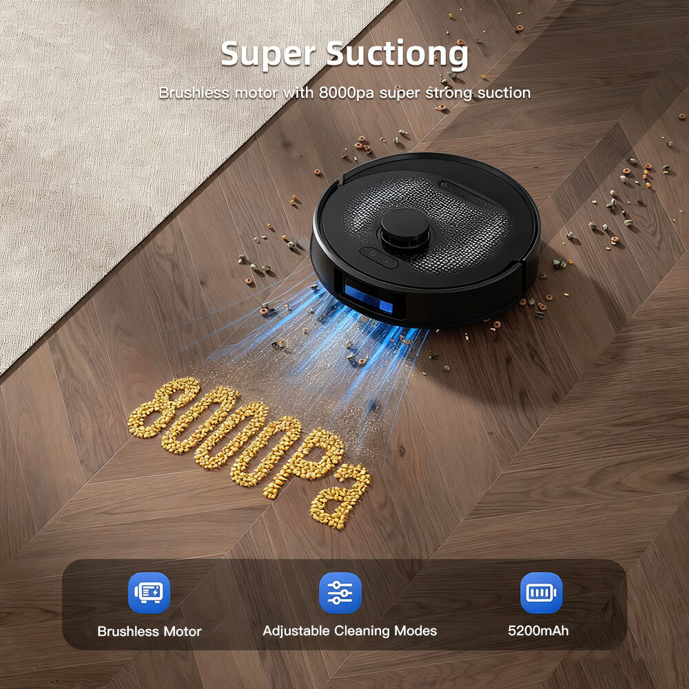 기본 흡입력 8000Pa 제공, 극도로 강력한 청소를 원할 경우 13000Pa 또는 20000Pa 옵션 선택 가능.